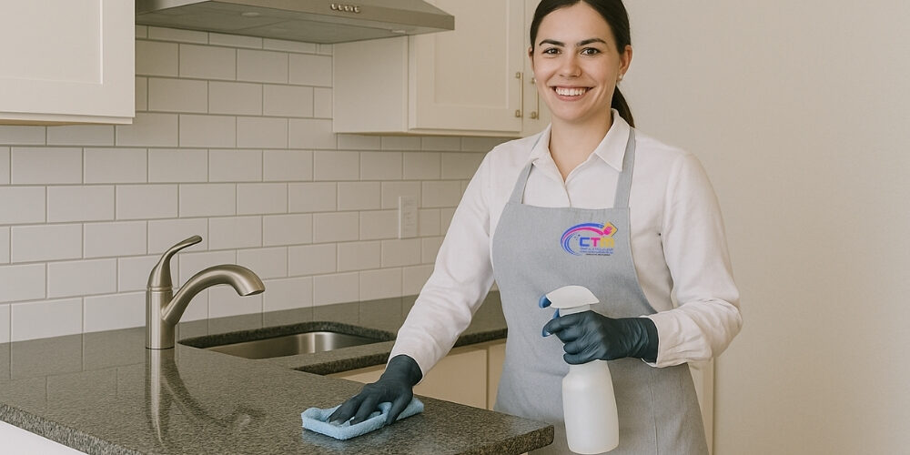 – Removing dust and grease from all accessible surfaces, including sinks, taps, countertops, stoves, and kitchen equipment